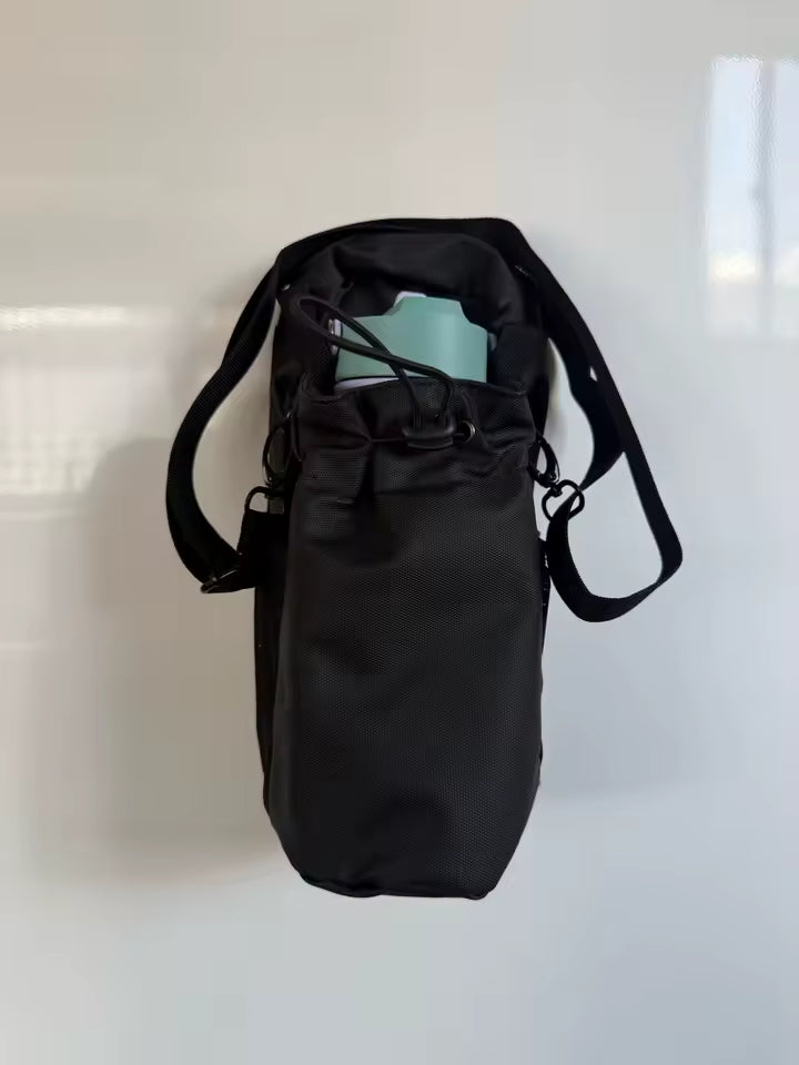 The bag uses a built-in magnetic backing that securely adheres to metal surfaces like gym equipment, lockers, or racks. This lets you attach your bottle bag off the floor and keeps your essentials in one place while you train.