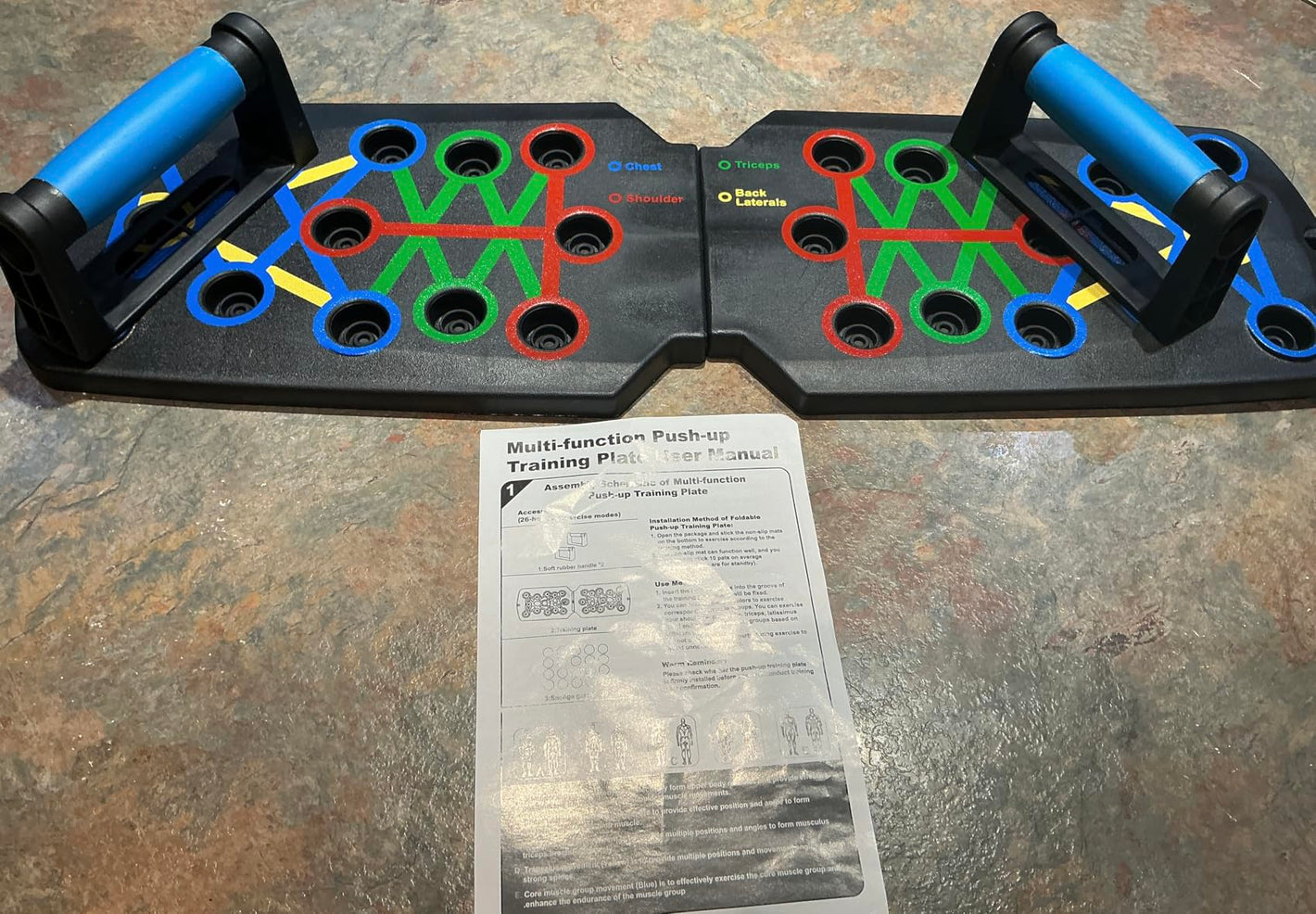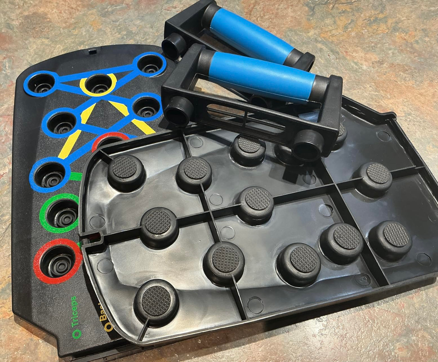 Set it down, choose your hand position, and start training. The guided placements increase muscle activation so even short sessions still hit your chest, shoulders, and triceps effectively.